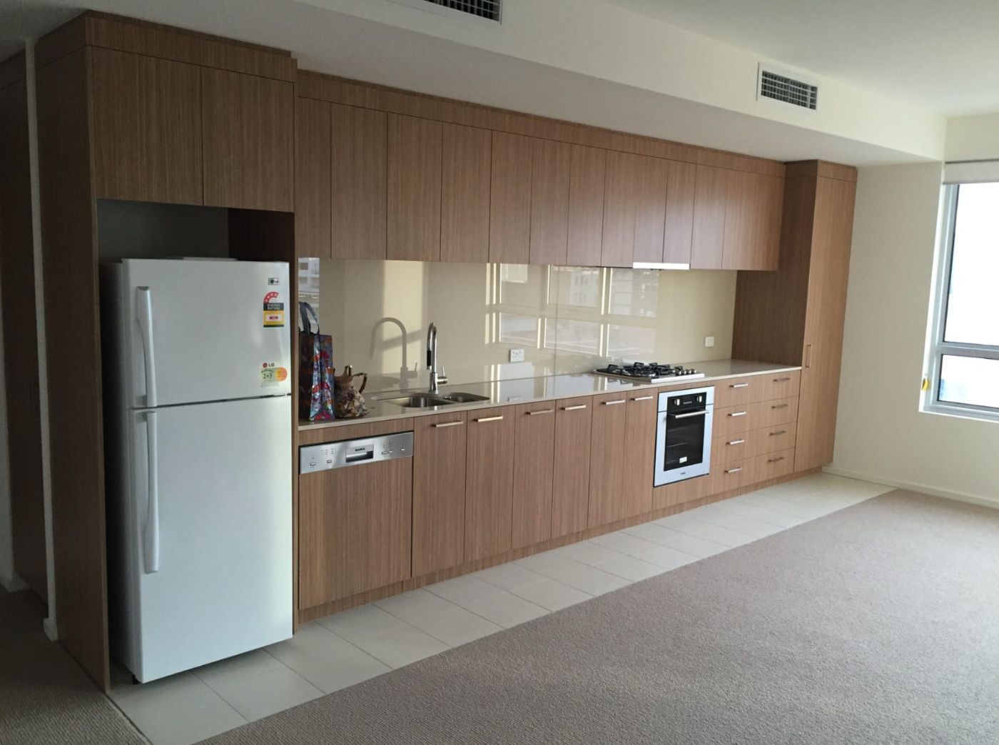 -开放式厨房,煤气做饭,配备烤箱洗碗机,充足储存空间