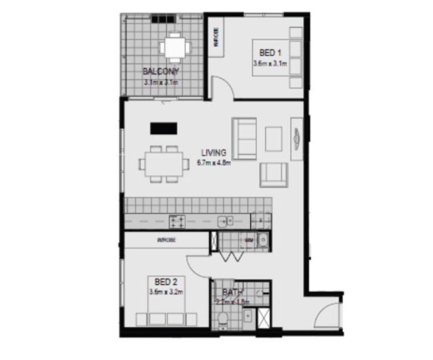 -两间卧室均带有入墙衣柜