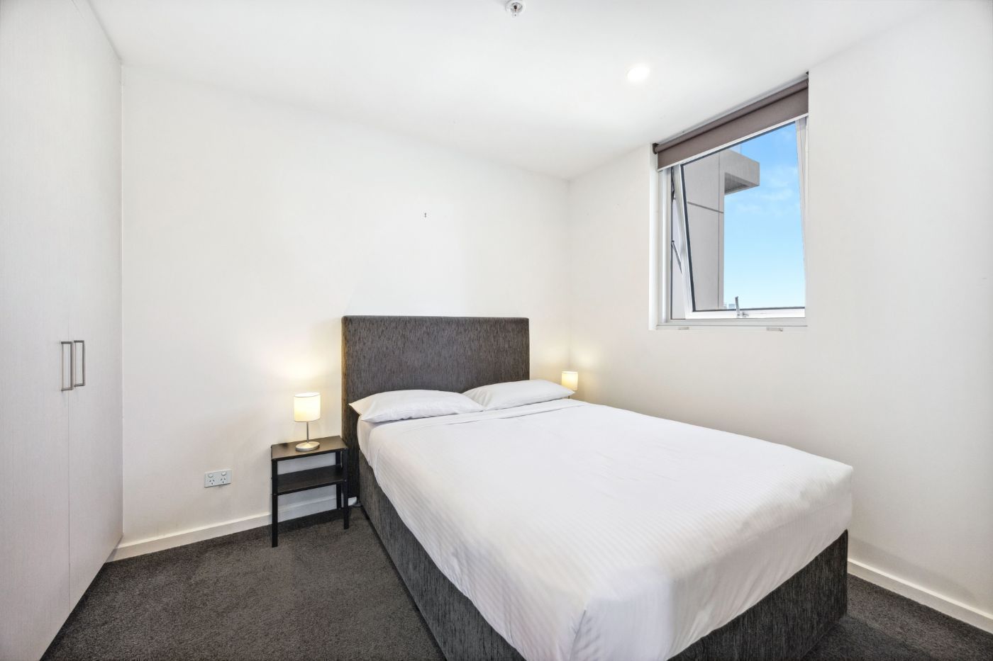 主卧室享有Light Square的美丽景色,配有独立卫浴和内置衣柜。