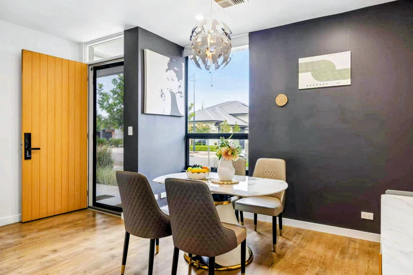 落地玻璃门将室内自然延伸至私密后院庭院,营造理想的室内外生活体验。晨起一杯咖啡,午后享受静谧时光,或周末与亲友小聚,这里皆可从容承载生活的美好。