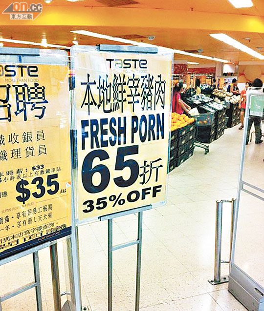 新鮮色情品 超巿錯體告示新鮮色情品六五折 |