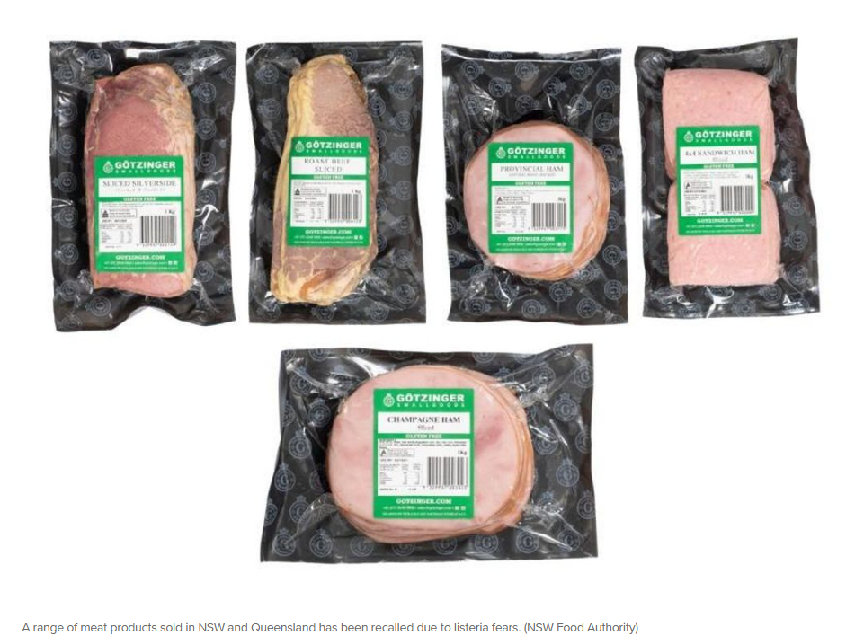 Gotzinger Smallgoods现紧急召回以下1公斤装切片产品:腌烩牛肉、烤牛肉、4x4切片火腿、香槟火腿及普罗旺斯风味火腿。