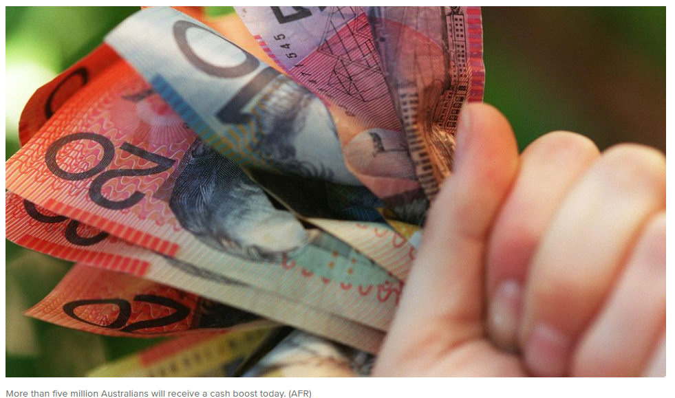 据《9news》3月20日报道,今日起,超过500万领取社会保障金的澳大利亚人将获得一笔现金补助,其中半数为养老金领取者。