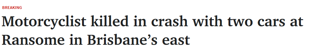布里斯班东部致命车祸:摩托车手与两车相撞,31岁男子当场身亡!