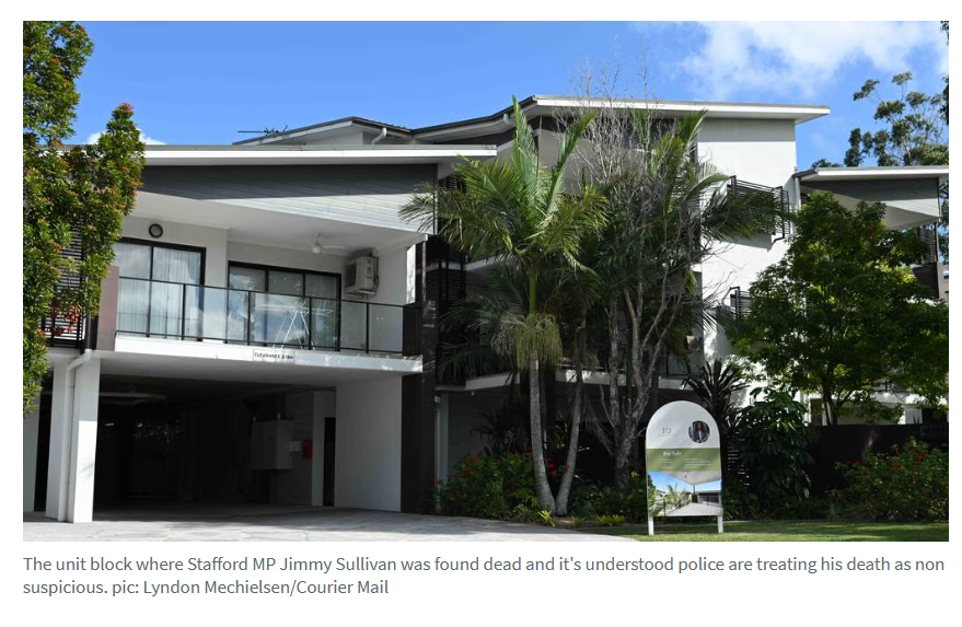 据《couriermail》4月10日报道,昆州议员Jimmy Sullivan被发现在布里斯班北部一处公寓内死亡。