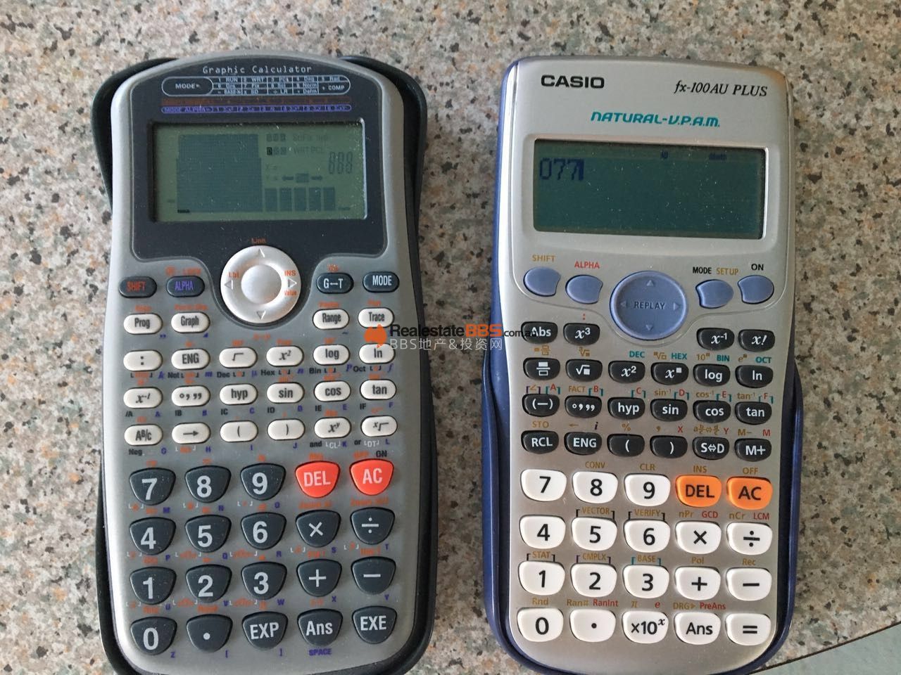 出售两个科学计算器,都是九成新 左侧绘图科学计算器 8刀。 右侧Casio科学计算器 15刀。 电话:0424921168 微信:swswwyy