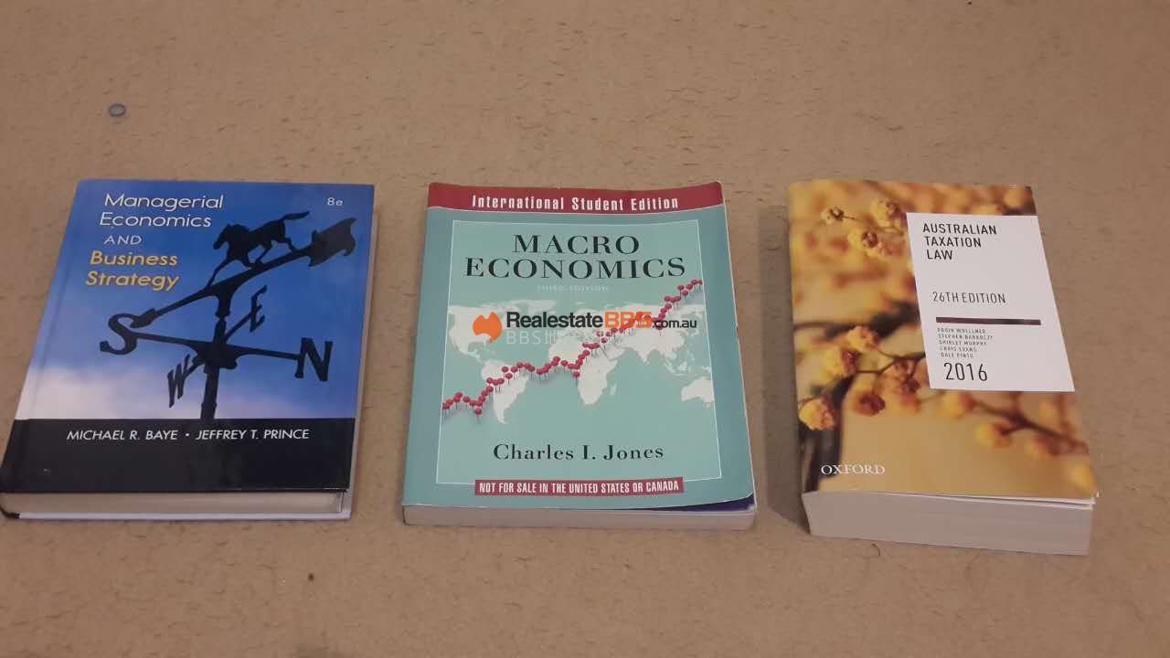 Managerial Economics and Business Strategy -- $75 MacroEconomics -- $75 2016 Asutralian taxation law -- $70 可议价 all in good condition! T:0424503188