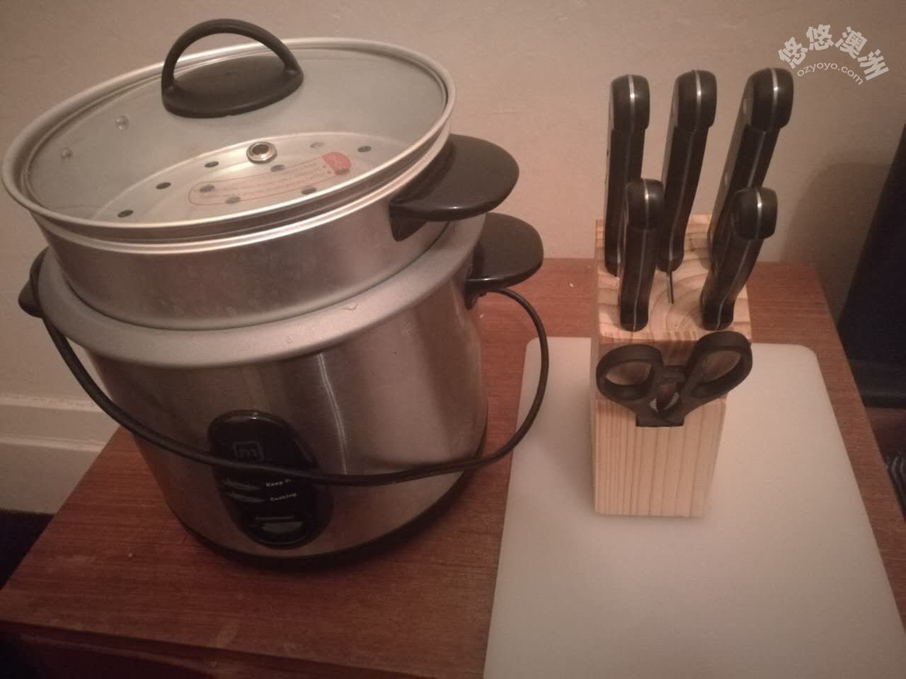 因回国转让9成新电饭锅,仅10刀,送刀具一套,切菜板一个,电话0434388543