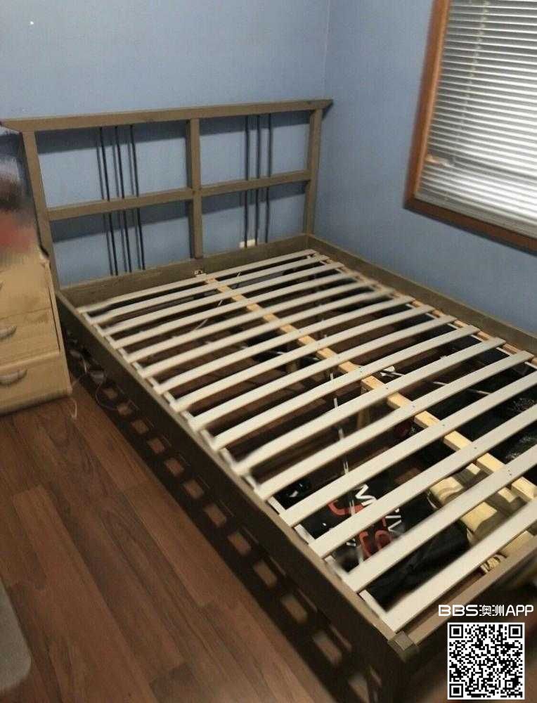 Bed frame comes with wooden slats in excellent condition.实木,超结实queen床架,$80. 微信: Lover85440057 电话:0410787688