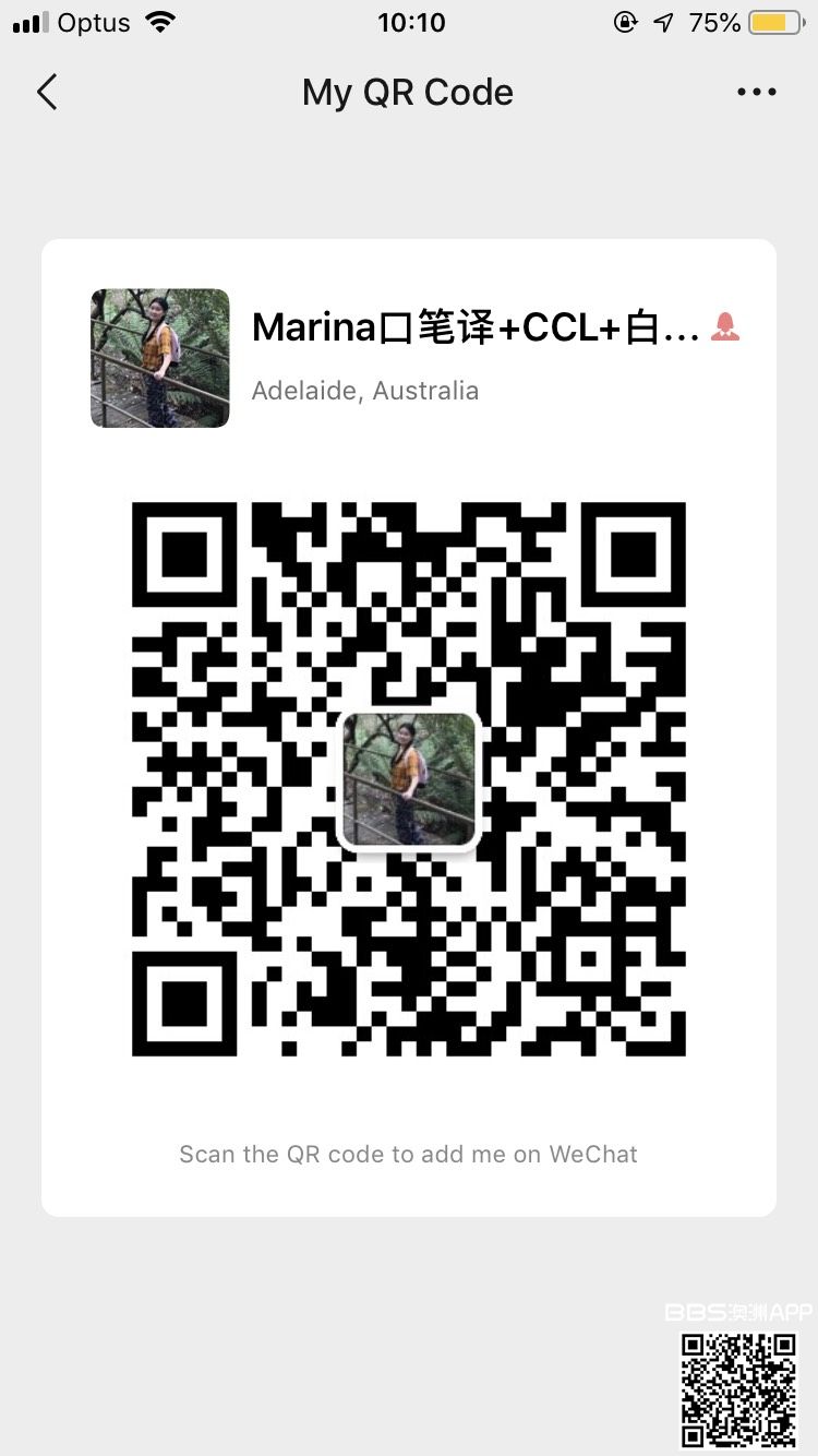 NAATI & AUSIT 译员为您提供中英口译+笔译服务 。口译: 会议口译, 随行口译,in-house 翻译,婚礼翻译 笔译: 驾照 户口本 法院判决书 医疗诊断书 房产证 聊天记录 等各种文件 微信1012484944。电话0415911396 ...