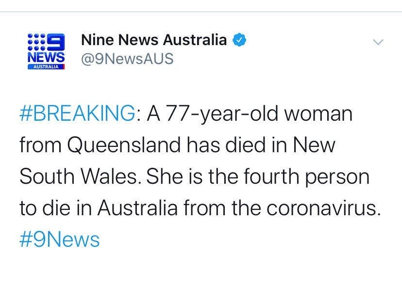 突发! 澳洲出现新冠病毒第4例死亡病例!