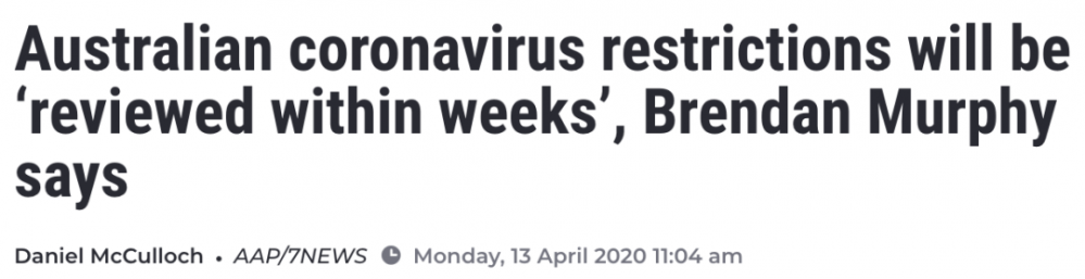 澳大利亚首席医疗官Brendan Murphy说,澳大利亚在抗击新冠病毒方面处于有利地位,但必须保持警惕。 虽然新冠病毒感染曲线正在变平,但Murphy教授表示,放松严格的社交距离规则还为时过早。 不是现在,是未来几周 ...