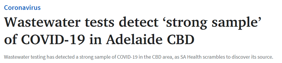 据最新报道,阿德莱德CBD的一个废水集水区中检测到了新冠病毒。 卫生部长Stephen Wade说,这是对所有人的一个提醒,请大家不要自满。 他说: “公共卫生官员在最近几个月非常明确地表示,他们非常担心约70%有CO ...