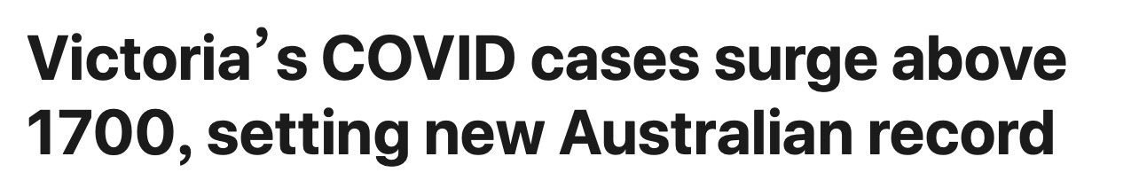 维多利亚州创造了另一个严峻的COVID日新增记录,是澳大利亚有史以来最高的单日新增。 首席卫生官Brett Sutton说,此后,数以万计的建筑工人前来注射第一剂新冠疫苗,但不能说该行业现在有多大比例的人已接种 ...