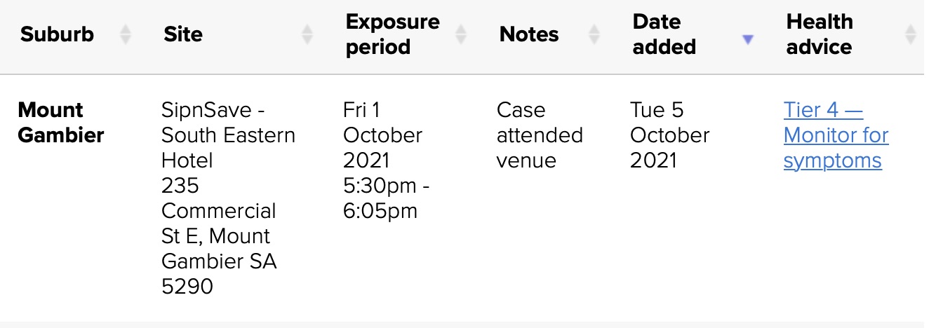 南澳州卫生局已在南澳州确定了一个新的COVID-19暴露地点。 如果你在相关时间内去过该暴露地点,需要遵循相关的健康建议 图文来源:Sa health 原文链接