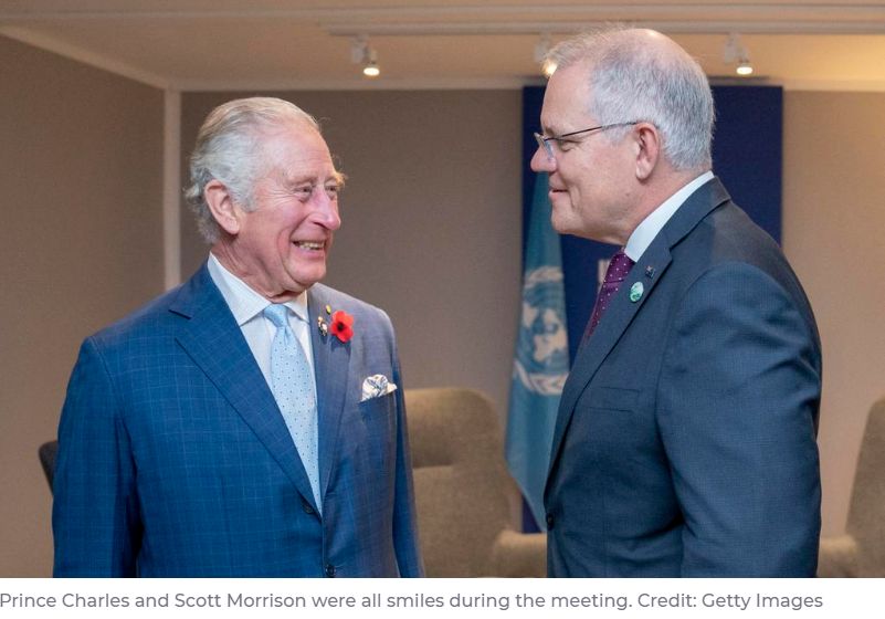 查尔斯王子在格拉斯哥举行的COP26气候峰会的间隙会见了斯科特·莫里森。 峰会早些时候,总理在简短的讲话中概述了澳大利亚到2050年实现净排放为零的计划。 他告诉世界各国领导人,降低低排放和无排放技术 ...