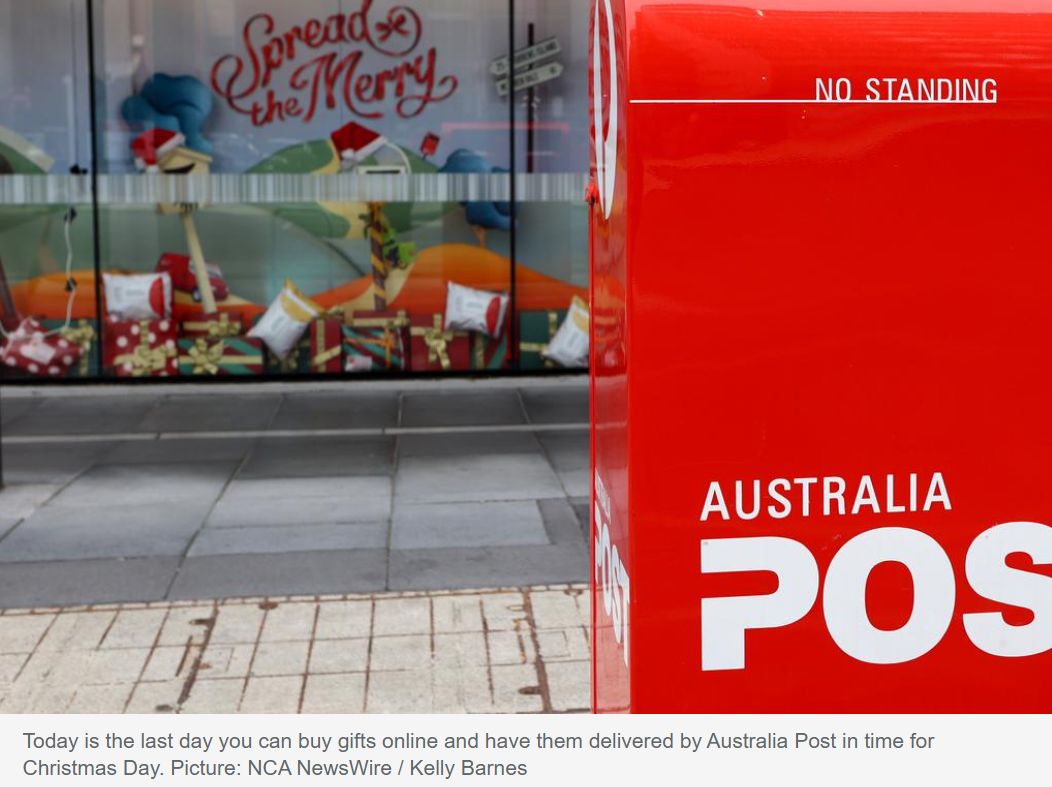想在网上订购礼物并在圣诞节前收到礼物的澳大利亚人,需要在今天下订单。 他说:"我们刚刚经历了11月有史以来最大的网上购物月,所以我们知道很多人在那些大型网络促销中提前购买了他们的圣诞购物。" ...