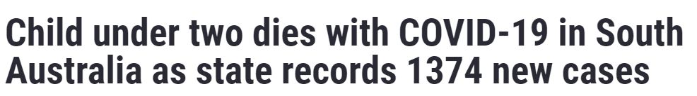 南澳一名两岁以下的COVID-19阳性儿童死亡。 这名儿童可能是澳大利亚最年轻的死于COVID的人,上个月在维州有一名10岁以下的儿童死于这种病毒。 南澳周四的病例数比周三的1472例略有下降。 目前有37名确诊病 ...