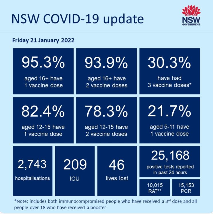 新州卫生部周五报告了25168个新增确诊病例,这是疫情以来死亡人数最多的一天,总死亡人数达到1024人。 随着数以百万计的快速抗原测试被订购和疫苗接种计划的启动,维州记录了数周以来最低的新增确诊病例。 周 ...