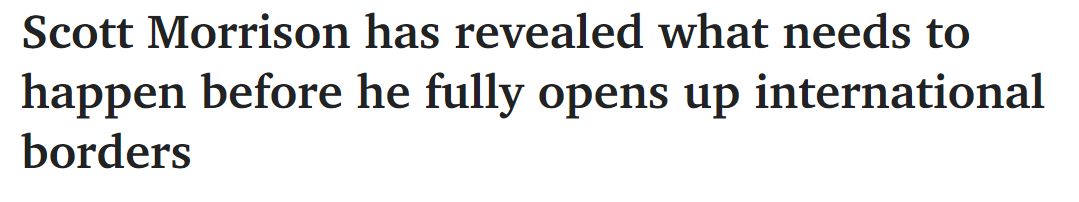 总理斯科特·莫里森透露,在澳大利亚考虑向更多的游客和参观者全面开放国际边界之前,需要确保医院系统能够应对病例的激增。 莫里森先生今天上午说,他已经责成官员们向他提供建议,说明向更多国际游客开放 ...