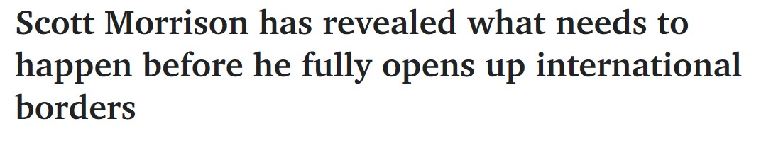 总理斯科特·莫里森透露,在澳大利亚考虑向更多的游客和参观者全面开放国际边界之前,需要确保医院系统能够应对病例的激增。 莫里森先生今天上午说,他已经责成官员们向他提供建议,说明向更多国际游客开放 ...