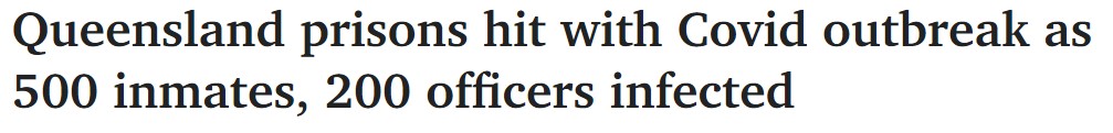 昆士兰监狱正在继续与Covid疫情作斗争,目前有515名囚犯和216名官员被感染,430人被隔离。 官员们被告知他们必须在1月24日前接种两针疫苗。 "在惩教中心工作的一小部分官员,相当于合格劳动力的不到2 ...