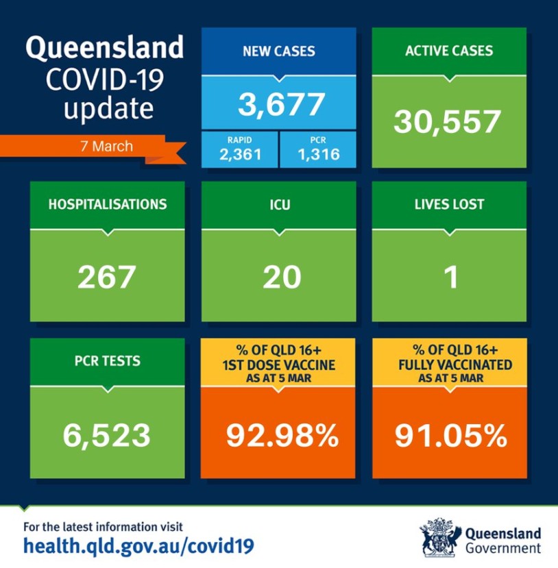 昆州过去24小时新增3677例确诊,1例死亡。 其中PCR检测1316例,快速检测2361例。 目前全州活跃病例为30557例。 目前共有267人因covid住院,20人住在重症监护室。 全州16岁以上人群两针接种 ...