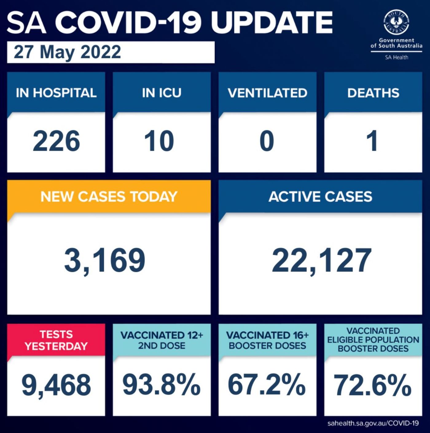 在过去的24小时里,南澳新增3169例,1人死亡! 目前南澳有22,127个活跃病例。 南澳卫生部证实,有1人死亡,是一名80多岁的妇女。 目前南澳有226名COVID-19患者住院,其中10人在重症监护室。 在住院患者中, ...