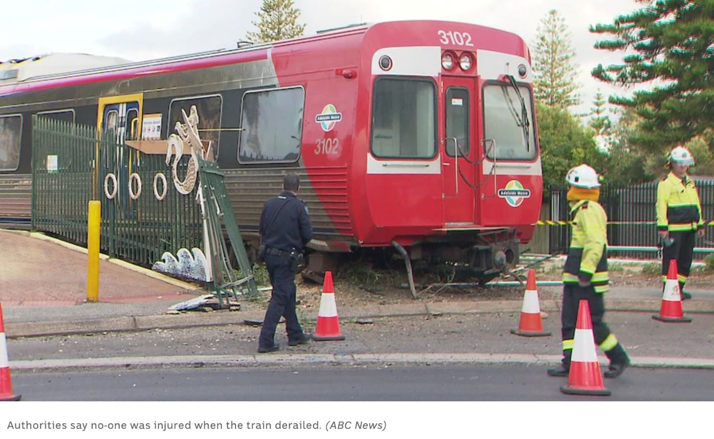 阿德莱德西郊的一条铁路线上,一列火车冲过终点站并脱轨,目前警方仍在调查。 “阻止一列火车停下来是非常困难的,这就是为什么我们总是关注安全问题。” “我很高兴没有人受伤。” 图文来源:abc 原文链接 ...