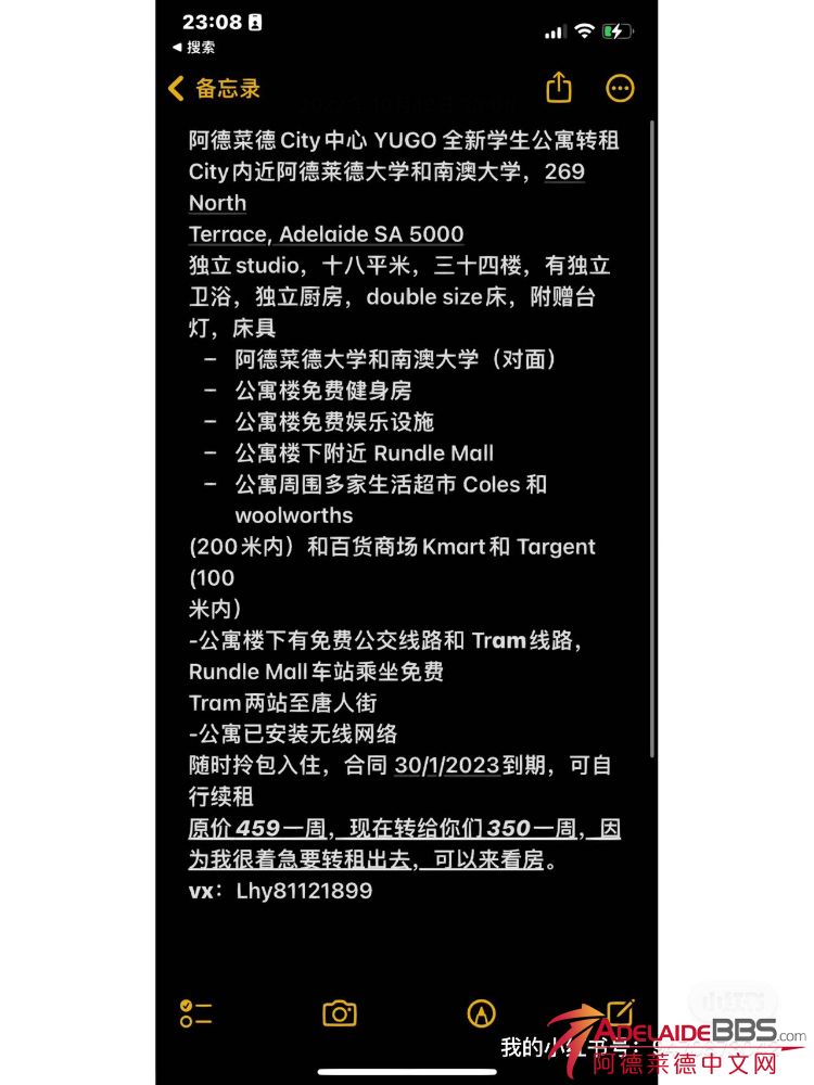 yugo高楼层34楼studio整租,官方现价459一周,急出所以350一周,懂的人都知道,这算是离阿大最近的公寓之一了(隔一条马路,走路1分钟就够),也是最新建成的公寓之一,门口有tram,city内免费。租期到明年一月三十 ...