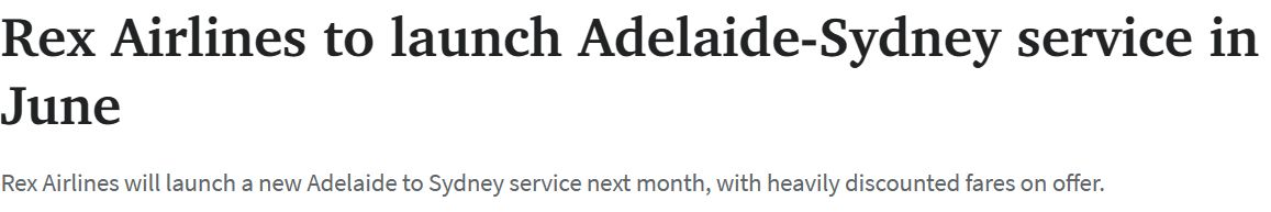 阿德莱德--悉尼航线将于今年6月开通!