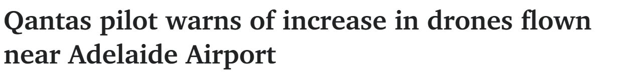 一名澳航飞行员在揭露了阿德莱德机场数量惊人的无人机违规事件后,警告无人机拥有者要避开航班飞行路线。 他说:"如果它以300或400公里的时速撞上挡风玻璃,挡风玻璃就会破裂。" 飞 ...