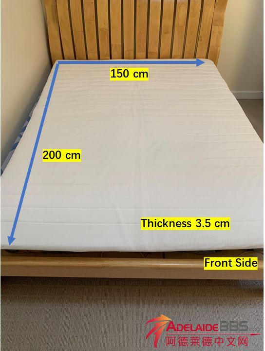 出售一张二手白色宜家TALGJE床垫。尺寸:150厘米 * 200厘米 * 3.5厘米,就用了一年,品相良好,50刀(原价200)。 地点:Vale Park(只接自取)。付款方式:仅限现金。 电话0404589789