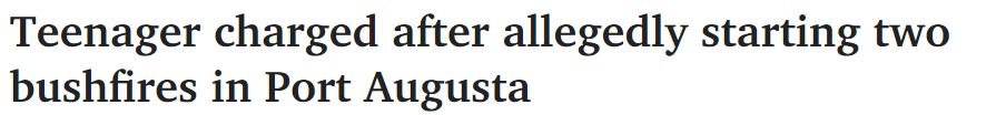 据悉,一名17岁的男孩因涉嫌本周在Port Augusta引发两起丛林火灾而被起诉。 目击者称在火灾发生时看到一名男性青年离开了该地区。 下午2:15左右,经过调查,警方来到一户居民家中,发现并逮捕了一 ...