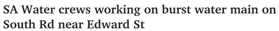 据悉,周三上午,阿德South Rd靠近Edward St的水管爆裂,两条车道已经关闭,交通十分混乱。 南澳水务的工作人员正在现场抢修,South Rd部分路段已被积水覆盖。 一名发言人称,现场技术人员于上午10点到达现场 ...