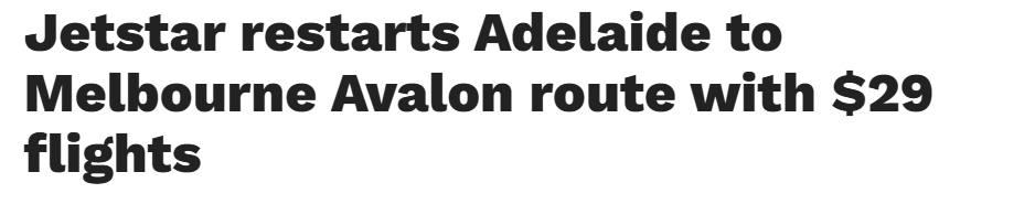 • 捷星航空重启阿德至墨尔本Avalon航线,单程机票$29起!