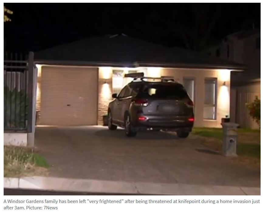 据报道,阿德东北郊区一户家庭遭遇持刀入侵者闯入住所并盗走汽车,全家至今仍处于"极度恐惧"状态。 Ashish与Karthiki Panchal夫妇指控,周三凌晨3点刚过,两名窃贼闯入他们位于Windsor Gardens的住宅持刀挟持全 ...