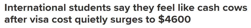 • 澳签证费暴涨至$4600引不满,留学生直言"感觉像摇钱树"!