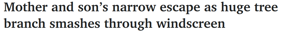 据3月27日报道,周四下午,阿德南郊一户家庭遭遇惊险一幕,一根树枝砸落在他们的汽车上,一家人险些受重伤。 一位母亲和她八岁的儿子正驾车行驶在Black Forest区的Forrest Ave,一根大树枝突然坠落,砸穿了汽车挡风 ...