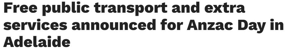 • 澳新军团日阿德公共交通免费,额外服务助通勤纪念活动!