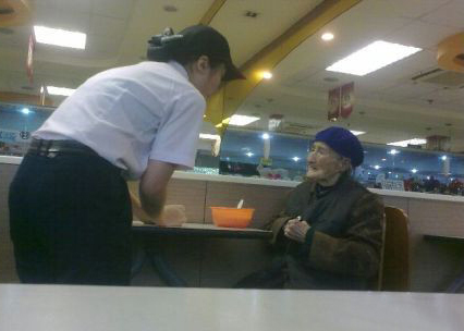 中午,一个80岁的婆婆去吃饭,问服务员,我只有2块钱,我想喝汤。因为老婆婆耳朵听不清楚,说话也不清楚,当时我能清楚的感受到老婆婆那种无奈的心情,老婆婆差点哭了,随后服务员端上一碗汤饭,婆婆看见里面 ...