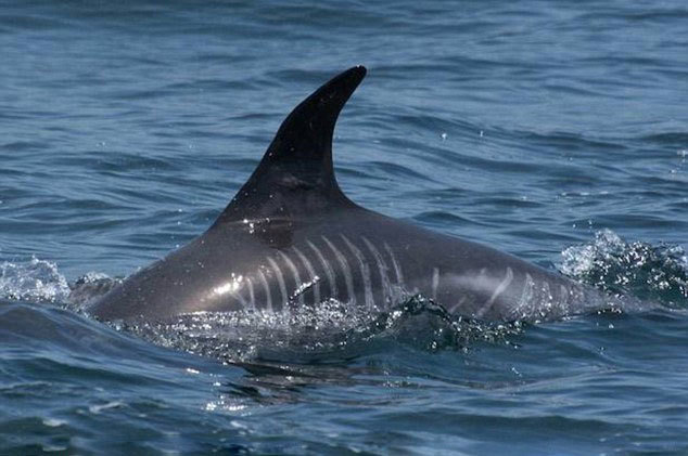 灰海豚是世界上最大型的海豚之一。专家推测,这只海豚是在还是幼崽的时候遭到了攻击,伤口愈合后,伤痕随着海豚的长大而变大、变长。人们看到这只海豚多次出没于蒙特利海湾。