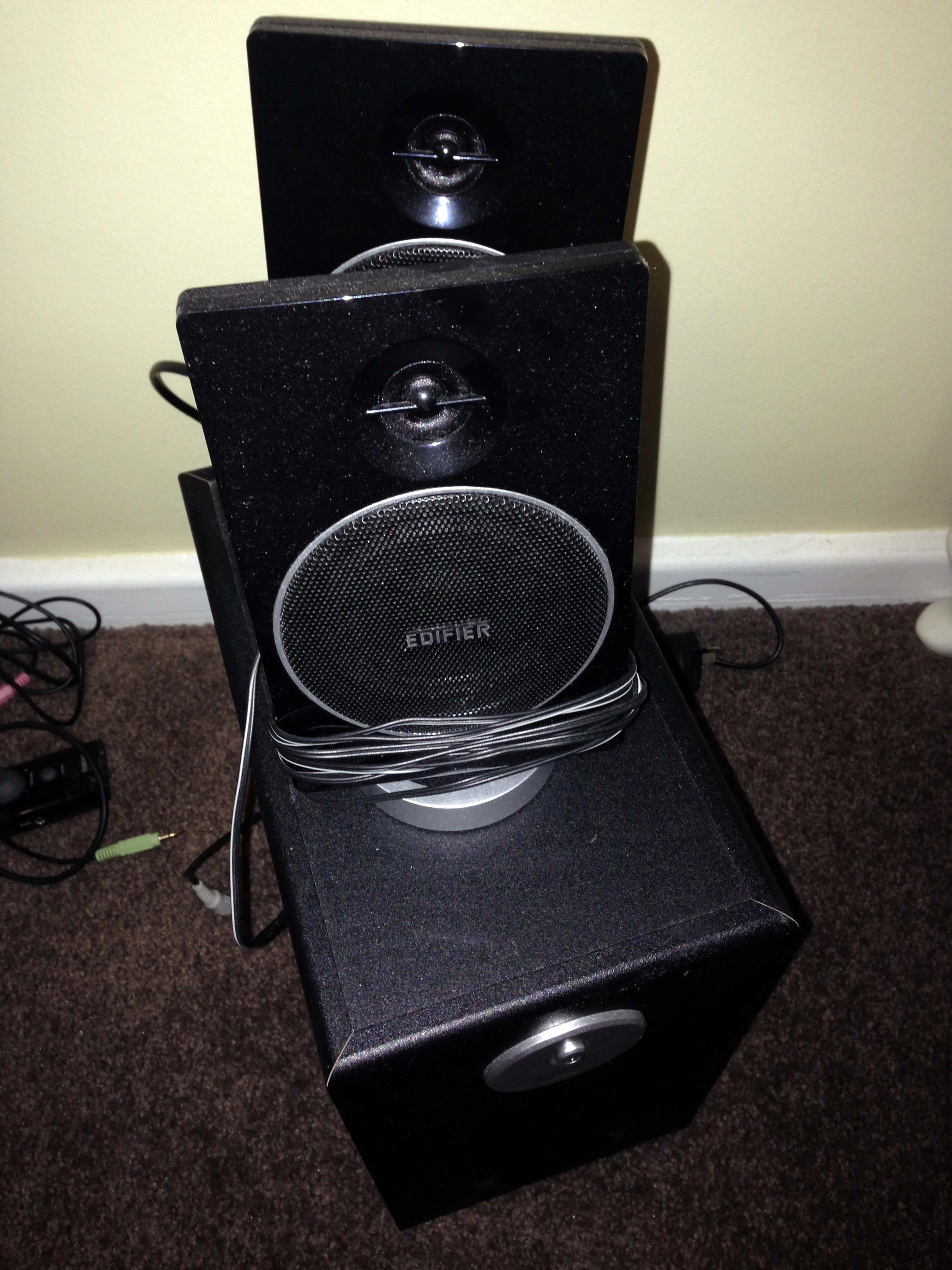 出售闲置漫步者低音炮,音效很好,低音强劲! 接受耳机交换! 有兴趣的朋友请留言,谢谢!