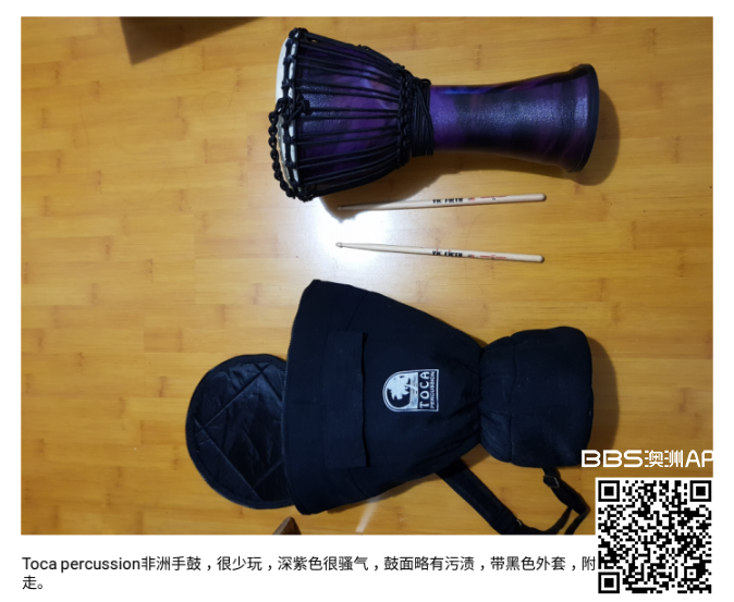 Toca Percussion非洲手鼓,很少玩。深紫色很骚气。150刀带走,带黑色外套附赠鼓槌(真正想买的可联系我,价格可商量)