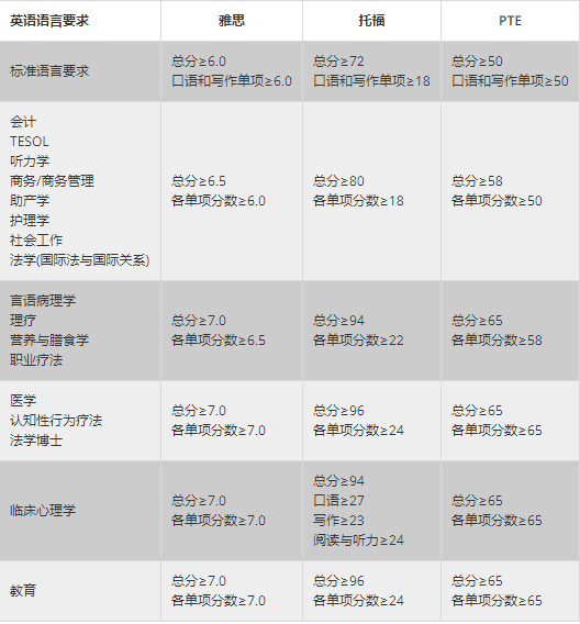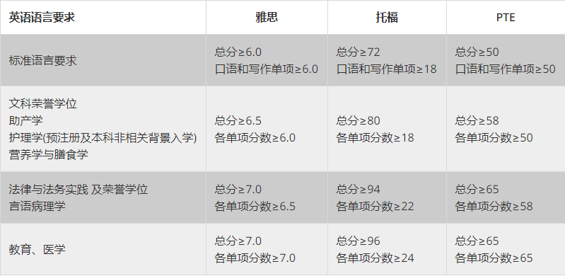 申请人需获得澳大利亚大学的硕士学位且研究部分至少达到(或相当于)18个学分,研究部分的平均成绩优异(达到Distinction)或同等学历。部分课程有可能要求申请人获得四年制荣誉学士学位且成绩优异。