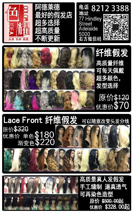 阿德莱德最好最全的假发店 各式纤维和真发假发