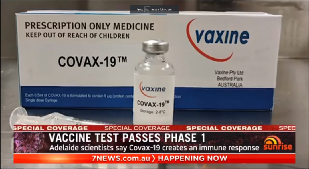 由阿德莱德的科学家开发的一种冠状病毒疫苗已经通过了第一阶段的人体试验,并可能在 "三四个月内 "上市。 该药物被命名为COVAX-19。在本月早些时候启动的人体实验中,被注射到40名志愿者注射了该药物。目前结果 ...