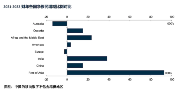 该报告指出:“澳大利亚政府决定在2022-23财年将永久移民名额提高3.5万,达到19.5万,这进一步加强了永久入境者的前景。”
