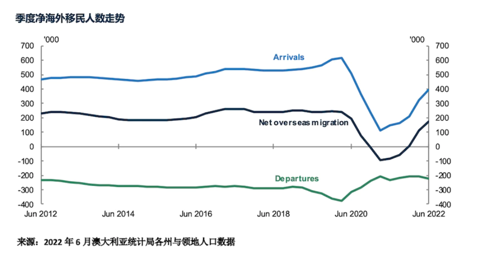 然而,在2021年末国门打开之后,抵达澳大利亚的人数“剧增”,净移民流入达到15万人。这一数字预计在2022-2023财年重返疫情前的23.5万水平。