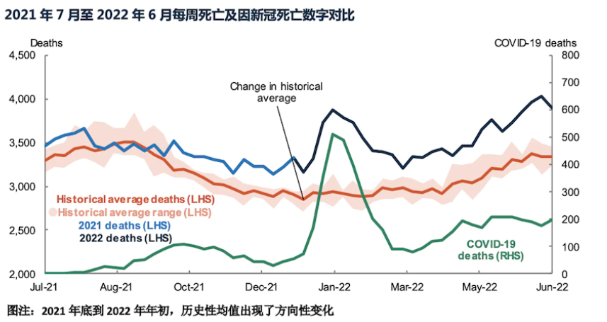 在2022年1月至2022年6月期间,新冠相关的死亡达到了5300例,明显高于2020年和2021年同期的水平。